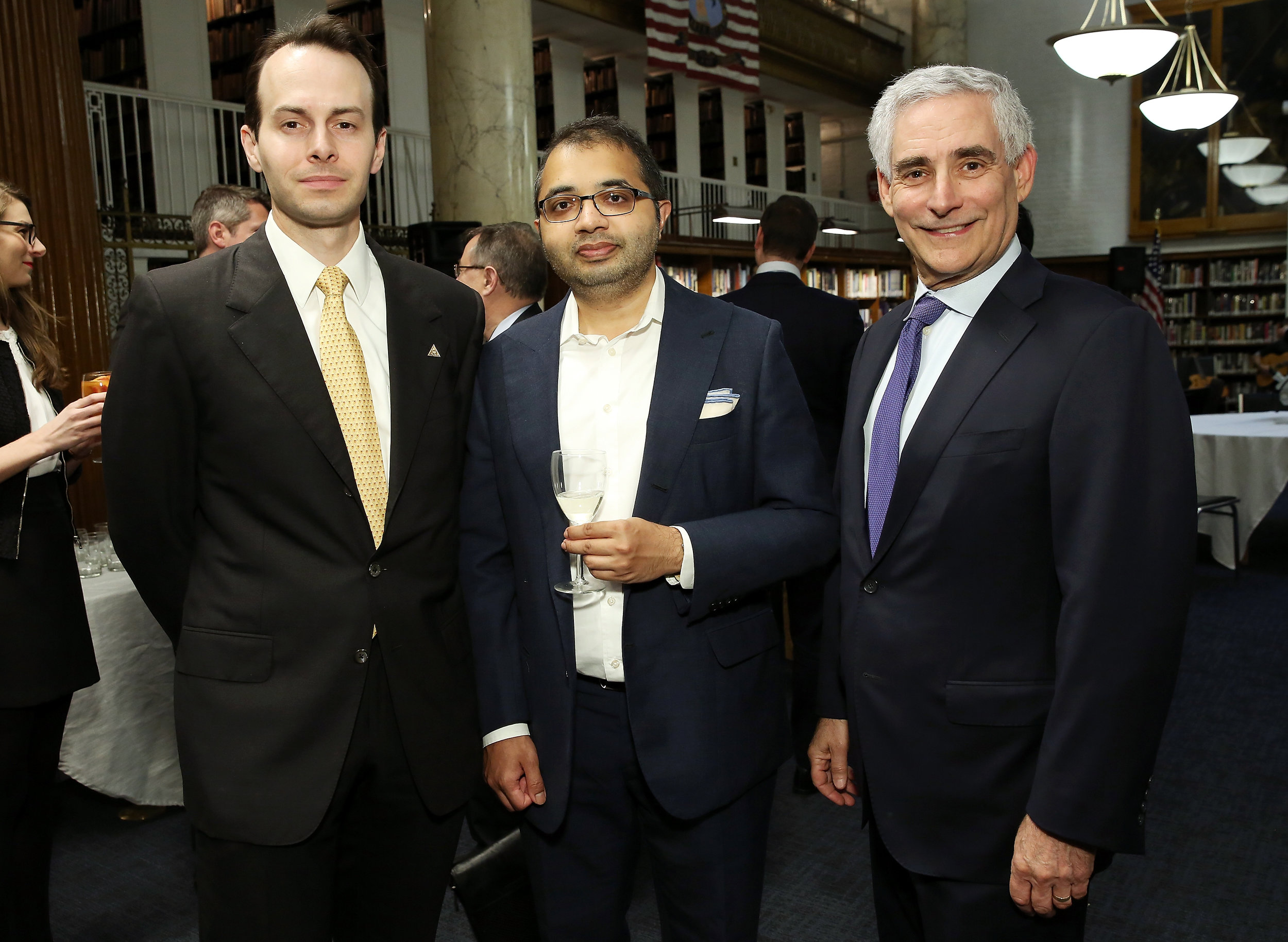 Nicholas Manousos (HSNY's President, left) and Steve Eagle (HSNY's Director of Education, right) presenting the 2018 Henry B. Fried Scholarship to Mark Duckett (middle left) and Erik Gonzalez (middle right).